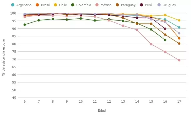 Además, Chile alcanza una cobertura del 95% de escolarización hasta los 17 años, uno de los porcentajes más altos de la región.